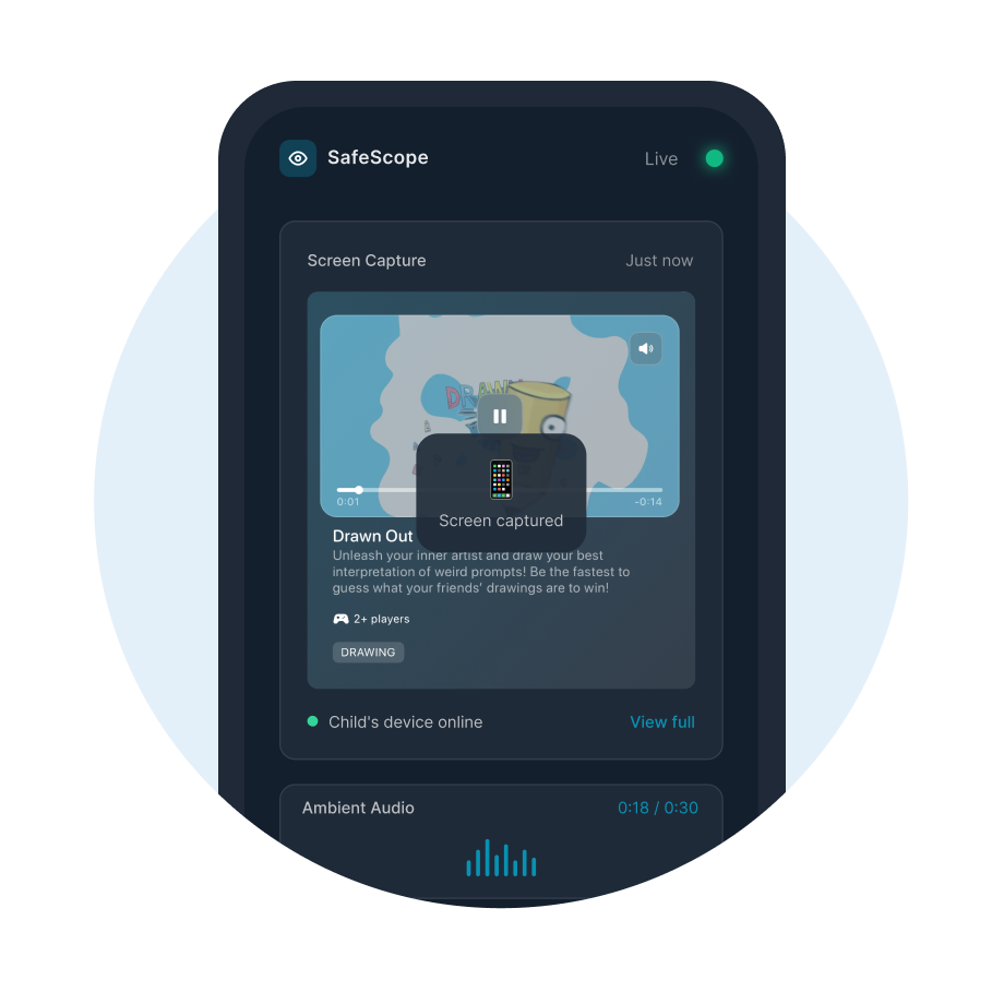 Watch your child's screen in real time with zero lag. Stay always in the know and step in the moment something feels off.